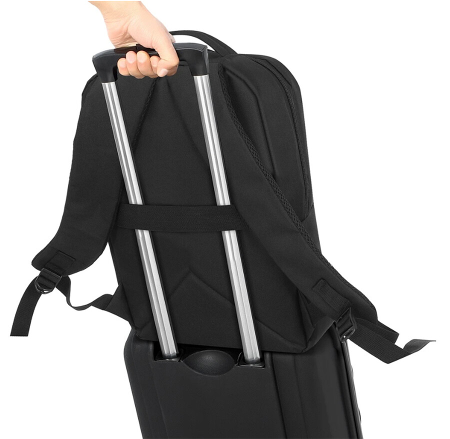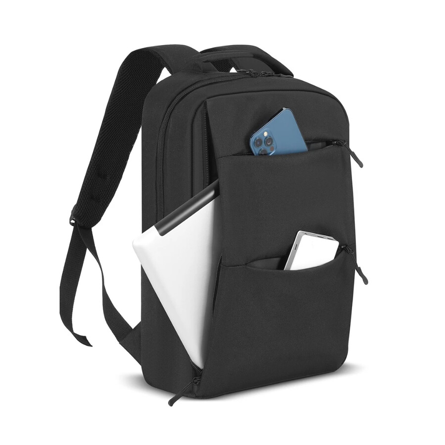 Yüksek denyeli, fitalat içermeyen imperteks kumaştan şık sırt çantası. 15.6" laptop için destekli bölmesinin yanısıra önde biri büyük, ikisi küçük 3 adet fermuarlı aksesuar cebi bulunmaktadır.