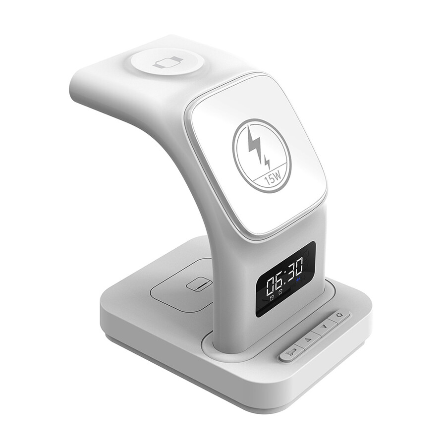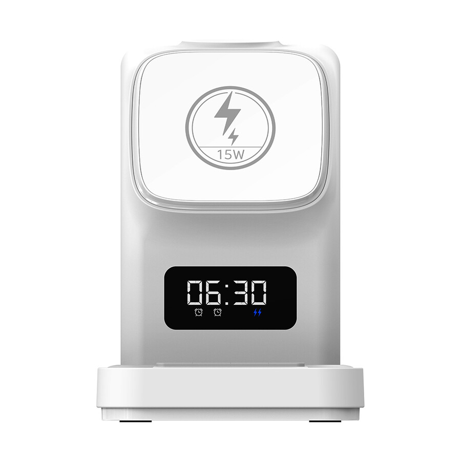 Telefon, akıllı saat ve bluetooth kulaklığınızı kablosuz olarak şarj edebileceğiniz magsafe özellikli, üçlü şarj cihazı. Ürün içerisinde batarya yoktur, cihaz kabloya bağlı olarak cihazlarınızı kablosuz şarj eder. 15 Watt hızlı şarj özelliği vardır. Cihaz üzerinde dijital göstergeli saat bulunmaktadır. Masaüstü kullanım için uygun, işlevsel bir hediyedir. Logo baskısına uygundur. 2 yıl garantilidir.