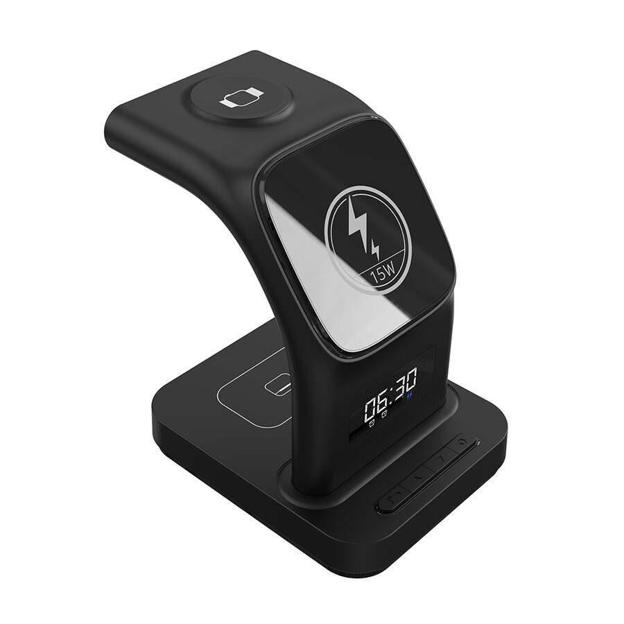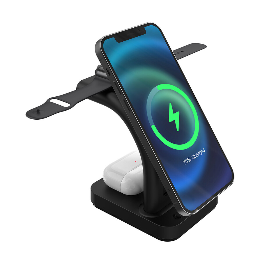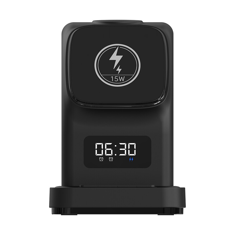 Telefon, akıllı saat ve bluetooth kulaklığınızı kablosuz olarak şarj edebileceğiniz magsafe özellikli, üçlü şarj cihazı. Ürün içerisinde batarya yoktur, cihaz kabloya bağlı olarak cihazlarınızı kablosuz şarj eder. 15 Watt hızlı şarj özelliği vardır. Cihaz üzerinde dijital göstergeli saat bulunmaktadır. Masaüstü kullanım için uygun, işlevsel bir hediyedir. Logo baskısına uygundur. 2 yıl garantilidir.