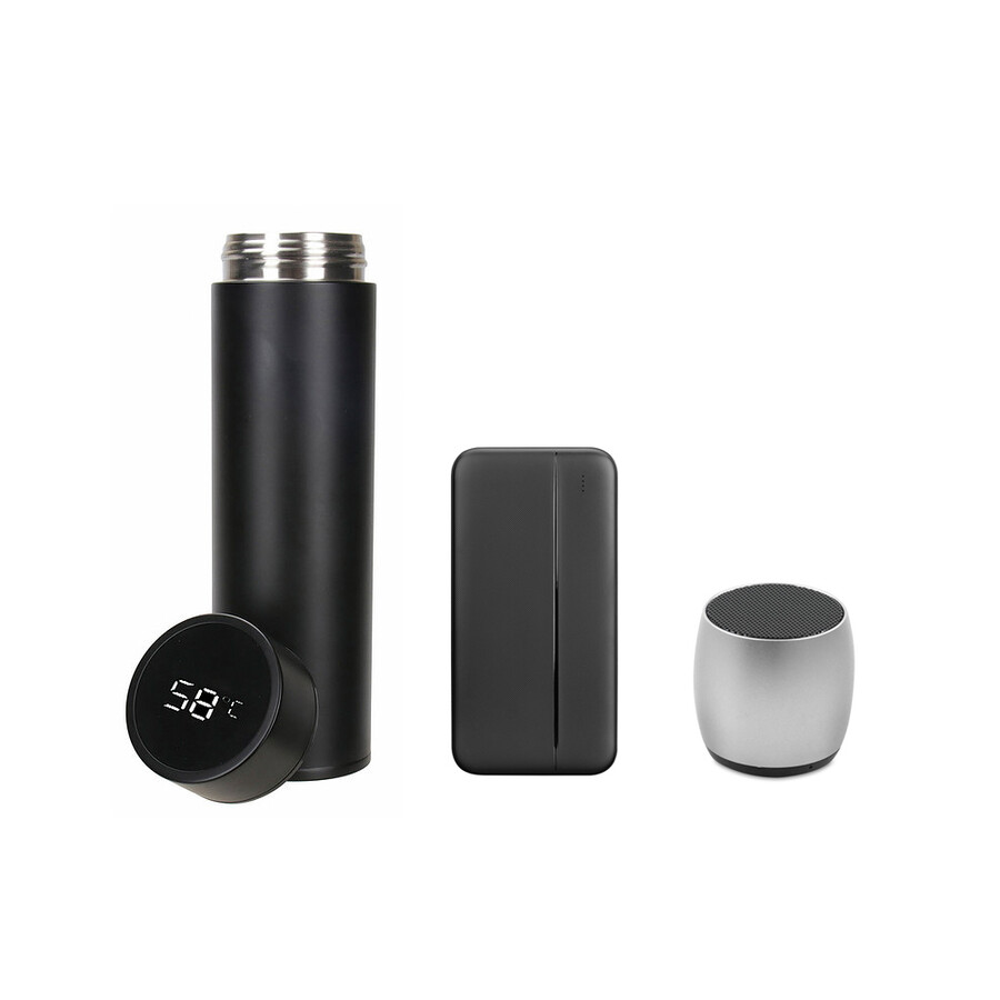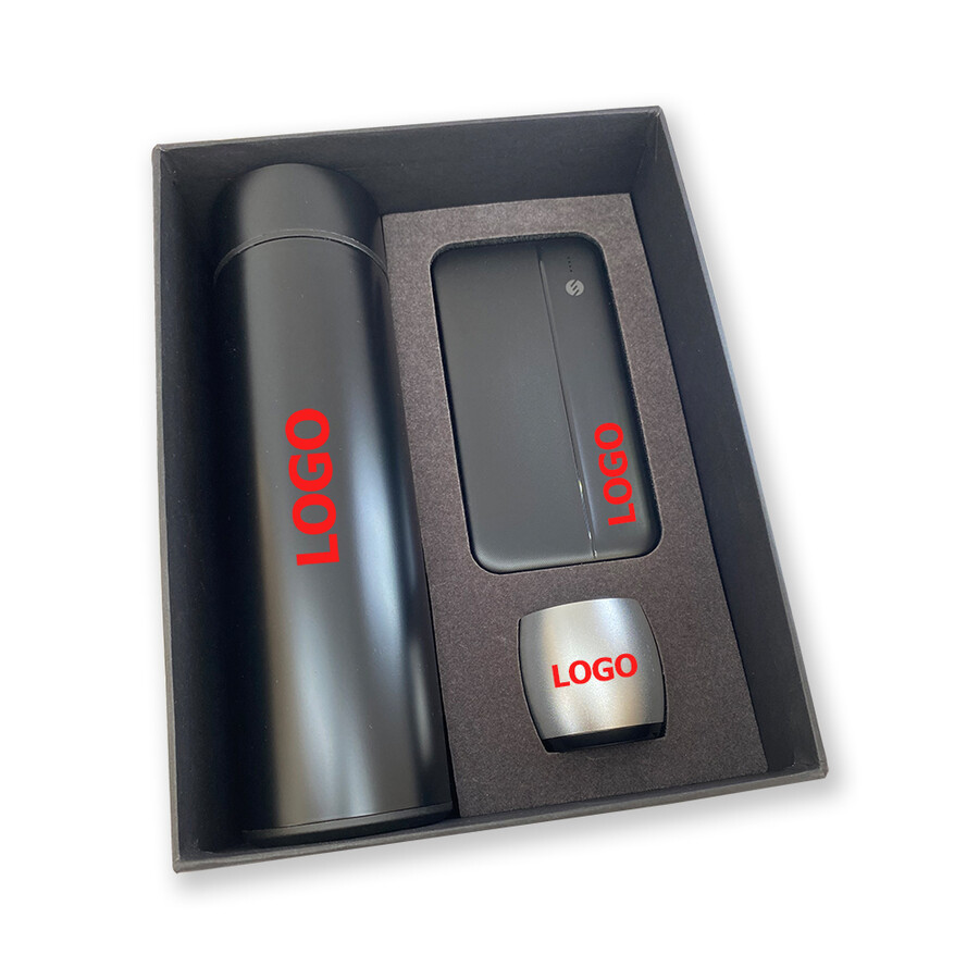 Kutu, powerbank, hoparlör ve termos üzerine logo baskısı fiyata dahildir. Teknolojik ürünler iki yıl garantilidir.