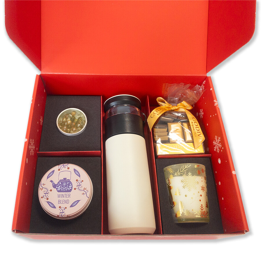 Hediye kutusu ve termos üzerine logonuz basılabilir. Baskı fiyata dahildir.