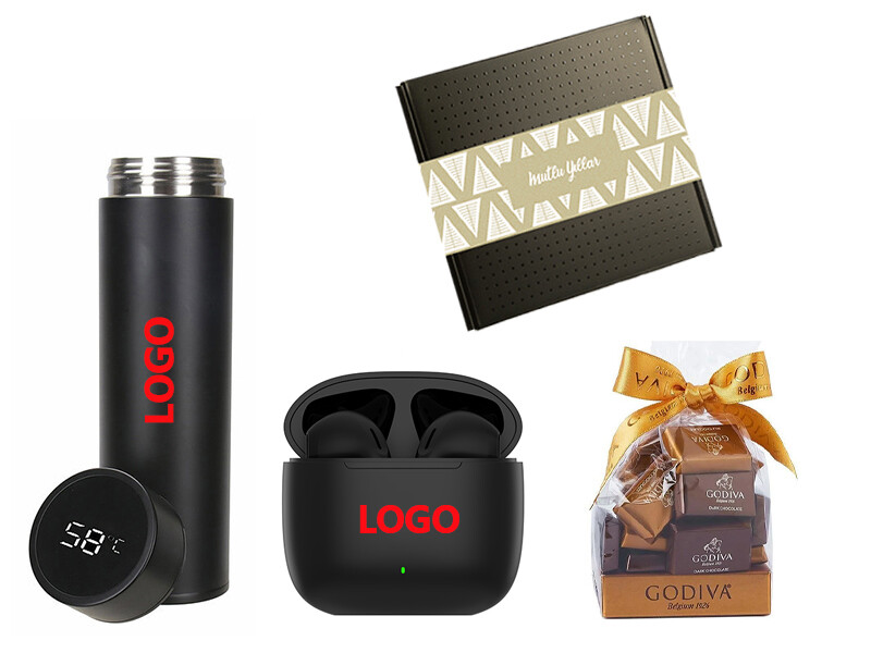 Kutu, termos ve kulaklık şarj kutusuna tek logo baskısı fiyata dahildir.