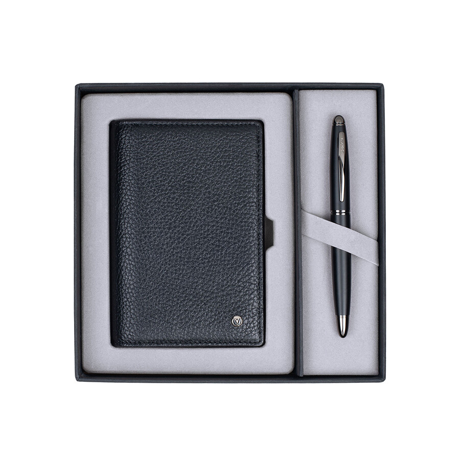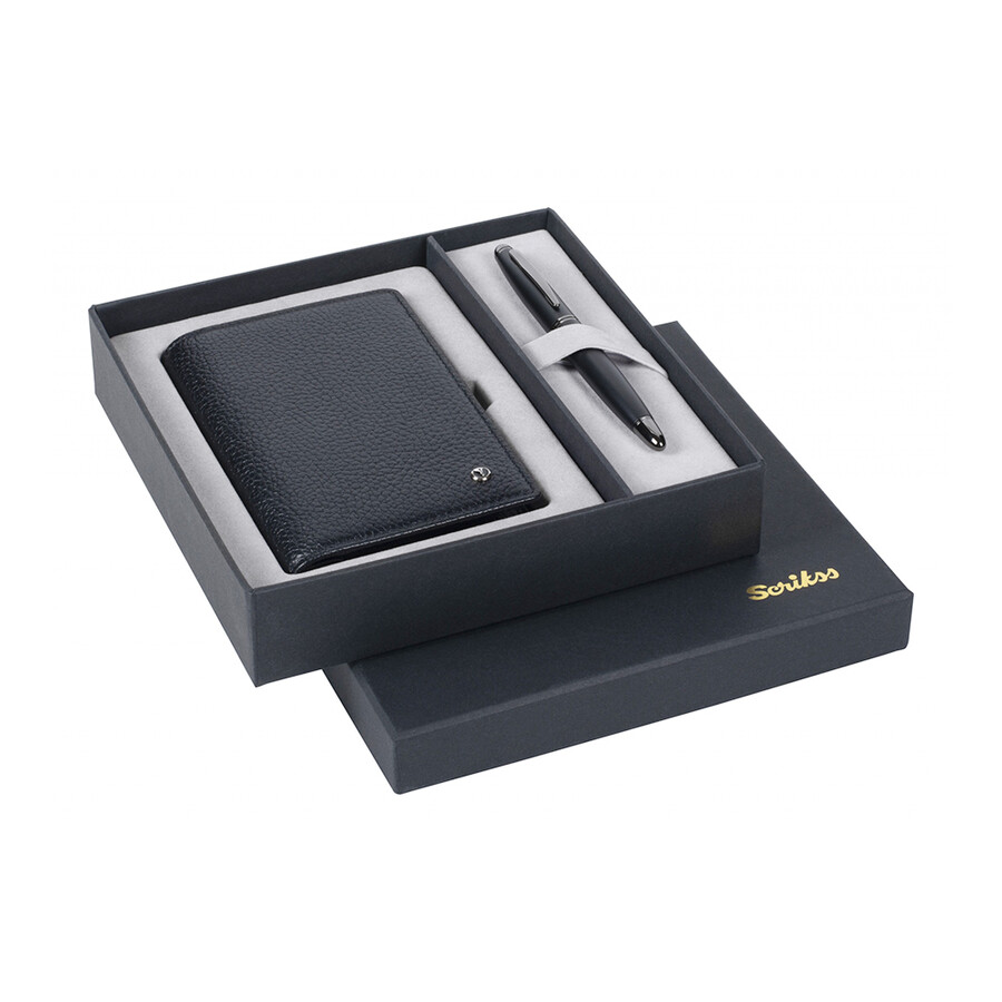 Siyah renk hakiki deri jotter ve Scrikss 88 Mat Siyah Dolma Kalem şık hediye kutusunda.