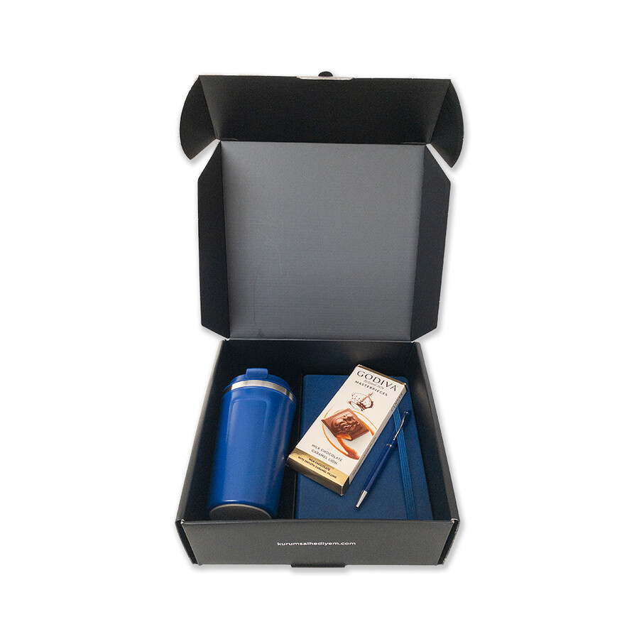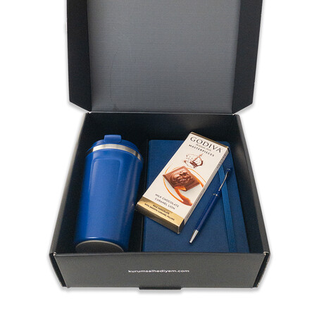 Müşteriler ve firma çalışanları için beğenilen bir hediye seti. Kutu, termos, defter ve kalem üzerine logo baskısı fiyata dahildir.