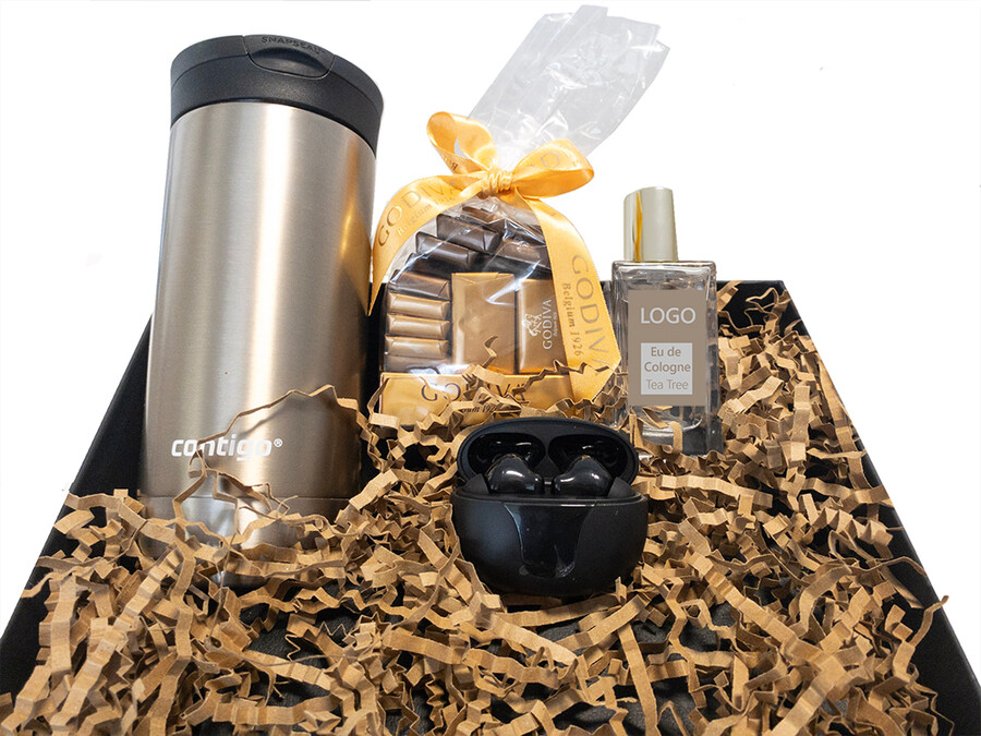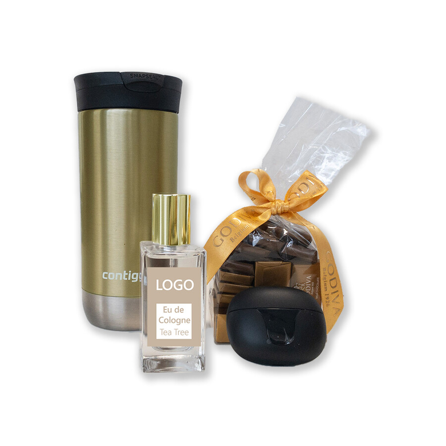 Kalitesiyla yıllarca akılda kalacak, iddialı bir hediye seti. Kutu, termos, kolonya ve kulaklık şarj kutusuna tek logo baskısı fiyata dahildir.