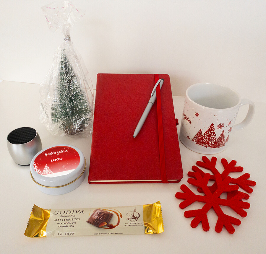 Kutu, defter , kalem ve hoparlör üzerine logo baskı yapılabilir. Baskılar fiyata dahildir.